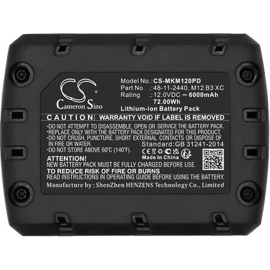 Akku für Milwaukee M12 REDLITHIUM XC 4.0 (bzw. M12 B3 XC, M12 B4 XC), 12 V, 6 Ah, Li-Ion, Hersteller Cameron Sino Technology