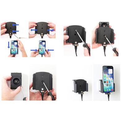 Die Halterung ist sehr stabil, das Telefon klebt und vibriert nicht darin. Die Halterung hat ein Scharnier, dank dem das Telefon jederzeit leicht ins Quer- oder Hochformat gedreht oder gekippt werden kann. Die Halterung lässt sich am Brodit ProClip befestigen.
