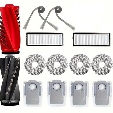 Großes Set an alternativen Bürsten, HEPA-Filtern, Wischtüchern, Staubbeuteln und Seitenbürsten für Saugroboter Roborock Qrevo, 14-teilig