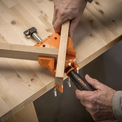Die Pony Jorgensen 90°-Eckzwinge ist ein Werkzeug, das schnell seinen Platz in Ihrer Werkstatt finden wird. Ob Sie einen Schrank bauen oder ein Bild einrahmen, diese Klemme garantiert perfekte rechte Winkel und eine solide Verbindung. Mit ihrem präzisen Mechanismus und dem festen 90°-Winkelist sie ideal für Gehrungs- und Stoßverbindungen bis zu 5 cm Breiteund für T-Verbindungen bis zu 2,8 cm.