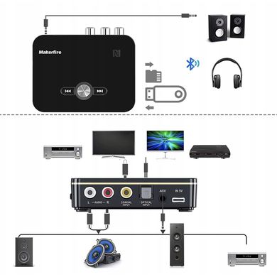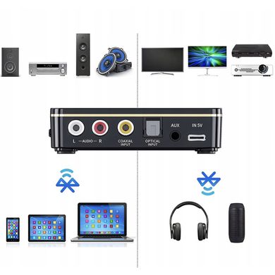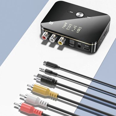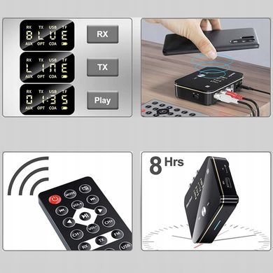 TX Bluetooth 5.0-Sender + RX Bluetooth 5.0-Audioempfänger, Modusschalter, 10 m Reichweite, Akkulaufzeit ca. 10 h, Fernbedienung