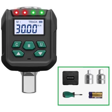 Digitaler Drehmomentadapter 17–340 Nm: genau, mit LED-Anzeige, LCD-Display, 4 Messeinheiten, Speicher für 500 Werte und Adaptern für vielseitigen Einsatz.